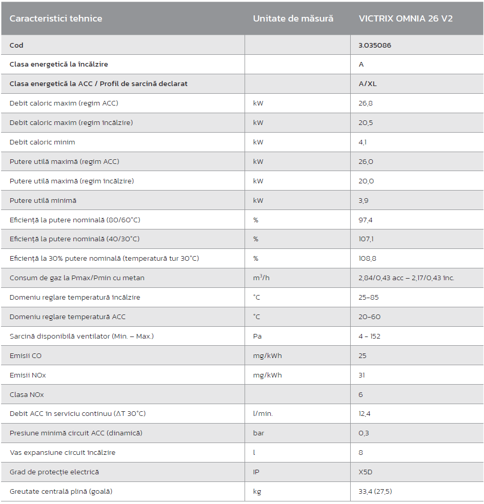 Centrala termica Immergas Victrix Omnia V2 26, condensatie, 20 kW incalzire, 26 kW preparare apa calda