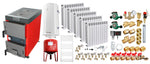 Pachet Cazan (centrala) cu plita pe combustibil solid (lemn, carbune, brichete), Fornello Rustic KP 20 kW, Calorifere aluminiu, Pompe, Boiler, Vas expansiune, Fitinguri montaj