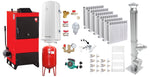 Pachet Centrala pe combustibil solid Fiama D2-40 Putere 46 kW, cu Ventilator si Automatizare, Cos inox, Calorifere Aluminiu Fornello Alvo, Boiler Termoelectric, Pompa, Vas Expansiune si Fitinguri