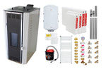 Pachet Termosemineu pe peleti Fornello Camino Rossi 25 kW, pompa Grundfos, vas expansiune, arzator inox, alb, A+,Kit evacuare 3.5 ml, Boiler Termoelectric Fornello 100 l, Termostat Salus 091FLRFV2, Aspirator, Radiatoare (calorifere) si Kit montaj