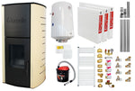Pachet Termosemineu pe peleti Fornello Michelle 12 kW, echipat cu pompa, vas expansiune, automatizare, Boiler, kit evacuare 3.5 ml, Aspirator Cenusa, Termostat Salus 091FLRFV2, Calorifere si Fitinguri