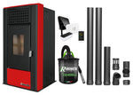 Pachet complet pentru incalzire cu control de la distanta format din Semineu (Soba) pe Peleti cu aer cald Magnesia 9 KW, culoare Bordeaux, termostat ambiental Salus IT 500, aspirator de cenusa si kit de evacuare...