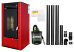 Pachet complet pentru incalzire Semineu (Soba) pe Peleti cu aer cald Fornello Air SmartPell 11 KW, culoare Bordeaux, termostat ambiental, aspirator de cenusa si kit de evacuare 3,5 metri