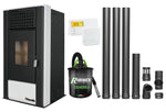 Pachet complet pentru incalzire Semineu (Soba) pe Peleti cu aer cald Fornello Magnesia 9 KW, culoare White, termostat ambiental, aspirator de cenusa si kit de evacuare 3,5 metri