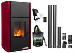 Pachet control de la distanta, Termosemineu pe peleti Fornello Fiama Confort 25 kw, culoare Bordeaux, complet echipat pentru incalzire, Pompa, Vas expansiune, Automatizare, Termostat ambiental Salus IT 500, Aspirator Cenusa si Kit evacuare 2.5 ml
