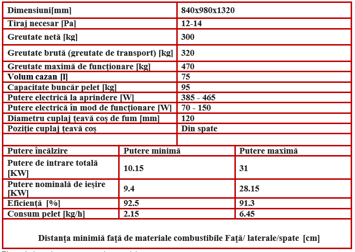 - consum de peleți între 2,15-6,45 kg/h, depinde de cât de rece e afară