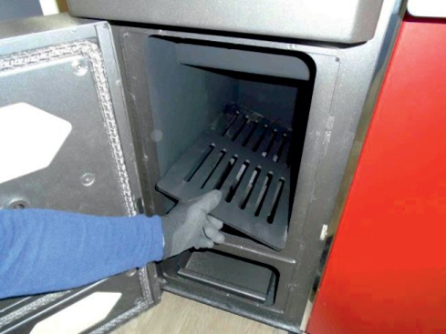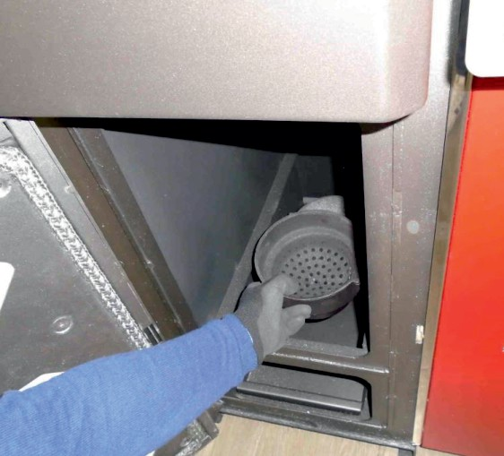 Trecere ușoară de la Peleti la Lemne, se scoate creuzetul din fontă și se pune grătarul pentru lemne care vine în dotare cu centrala :