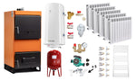 Pachet Centrala pe combustibil solid Fiama W 25 kW, Calorifere aluminiu Fornello Alvo, Boiler Termoelectric, Vas Expansune, Pompa si Fitinguri Montaj