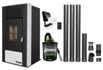 Pachet complet pentru incalzire cu control de la distanta format din Semineu (Soba) pe Peleti cu aer cald Magnesia 9 KW, culoare White, termostat ambiental Salus IT 500, aspirator de cenusa si kit de evacuare 3,5 metri