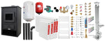 Pachet incalzire si apa calda pentru 3 camere Termosemineu pe lemne, brichete si carbune Fornello PADOVA E, 19.4 kW, 510x500x910 mm, cos inox, teava PPR si fitinguri, boiler termoelectric 80l, vas expansiune, pompa circulatie, calorifere si kit montaj