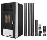 Pachet pentru incalzire Semineu (Soba) pe Peleti cu aer cald Fornello Magnesia 9 KW, culoare White si kit evacuare 3,5 metri