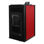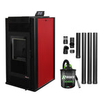 Pachet Semineu soba pe peleti cu aer cald, FIAMA MAXIMA 14 KW , aprindere electrica, tiraj fortat, wifi, focar din fonta, recomandat pentru 140 mp, Bordeaux,  kit evacuare 3.5 ml si aspirator cenusa Pachetul contine urmatoarele produse:1.Semineu pe peleti...