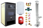 Pachet Termosemineu pe lemne, brichete si carbune Fornello MILANO E, 24 KW, cuptor, Ivory, 580x560x1060 mm, cos inox, boiler termoelectric 100l, vas expansiune, pompa circulatie si kit montaj