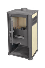Semineu (Soba) pe lemne Fornello Atene G Ivory 7-9 kW, 490x460x930 mm, gratar ardere din fonta, camera de ardere samotata, usa fonta cu geam din sticla termorezistenta si plita din fonta