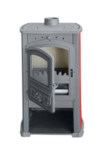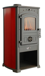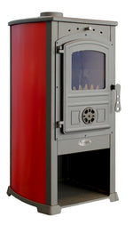 Semineu (Soba) pe lemne Fornello Modena Red 7-9 kW, 480x460x930 mm, gratar ardere din fonta, camera de ardere samotata, usa fonta cu geam din sticla termorezistenta si plita din fonta