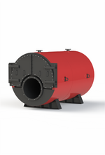 Constructie orizontala, cu trei cai, cu camera de ardere volumetrica si manta de apa.