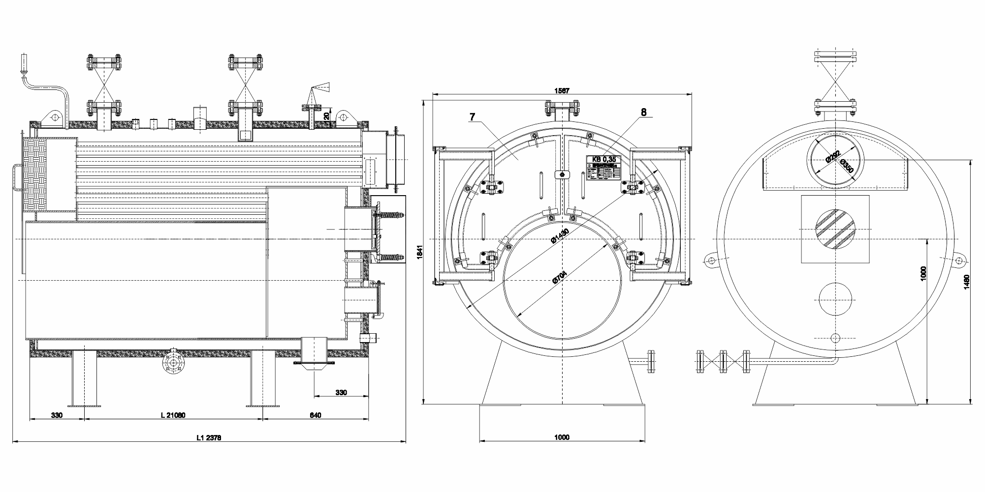 Constructie orizontala, cu trei cai, cu camera de ardere volumetrica si manta de apa.