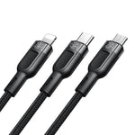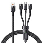 Acum ai nevoie de un singur cablu pentru a încărca mai multe dispozitive! Cablul Mcdodo 3 în 1 are 3 conectori - USB-C, Lightning și microUSB, astfel încât să puteți încărca convenabil până la trei dispozitive simultan. Acesta oferă încărcare rapidă și suportă mai multe standarde de încărcare rapidă, asigurând totodată utilizarea în siguranță. De asemenea, are un design durabil și rezistent.