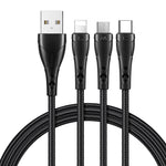Cablu 3 în 1 USB la USB-C / Lightning / Micro USB (negru)