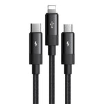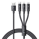 Uitați de necesitatea de a utiliza mai multe cabluri pentru a încărca dispozitive cu porturi diferite. Acum aveți nevoie doar de un singur cablu Mcdodo CA-5790! Cu 3 conectori disponibili (USB-C, Lightning, micro USB), puteți conecta simultan 3 dispozitive la acesta, iar curentul care ajunge până la 3,5A va oferi performanțe impresionante. De asemenea, produsul permite transferul de date la viteze de până la 480 Mbps și vine cu iluminare LED.