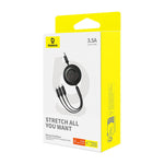 Baseus Free2Draw este un cablu universal 3 în 1 care este echipat cu 3 conectori - USB-C, micro USB și Lightning. Acest lucru vă permite să încărcați 3 dispozitive în același timp și prezintă o compatibilitate largă. Acesta oferă un curent de până la 3,5 amperi și vă permite să transferați fișiere la viteze de până la 480 Mbps. De asemenea, se distinge prin lungimea sa reglabilă și designul durabil.