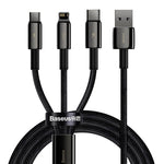 Cablu USB 3 în 1 Baseus Tungsten Gold, USB la micro USB / USB-C / Lightning, 3,5 A, 1,5 m (negru)