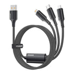 Cablu USB-A 3in1, Essager, EXCMTL-JJ01-P, USB-C/Lightning/Micro, 100W, 1.2m (negru)