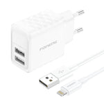 Foneng EU53 2xUSB-A, 2.4A încărcător de rețea (alb) + cablu USB-A toLightning