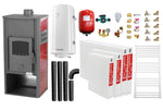 Pachet incalzire si apa calda pentru 3 camere Termosemineu pe lemne, brichete si carbune Fornello Roma E, Bordeaux, 22 kW, 49x45x103 cm, boiler termoelectric 100l, vas expansiune, pompa circulatie, kit evacuare, calorifere si kit montaj