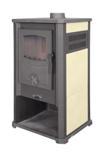 Semineu (Soba) pe lemne Fornello Atene G Ivory 7-9 kW, 490x460x930 mm, gratar ardere din fonta, camera de ardere samotata, usa fonta cu geam din sticla termorezistenta si plita din fonta