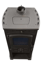 Semineu (Soba) pe lemne Fornello Modena Red 7-9 kW, 480x460x930 mm, gratar ardere din fonta, camera de ardere samotata, usa fonta cu geam din sticla termorezistenta si plita din fonta