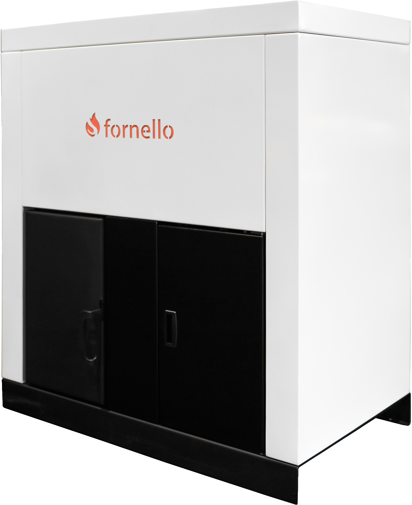 Centrala pe peleti Fornello Eco Energy 35 kW, complet echipata pentru incalzire automatizare, pompa recirculare, vas expansiune, afisaj digital, arzator fonta, curatare mecania drumuri fum, buncar peleti integrat 75 kg