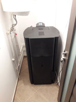 CENTRALA PE PELETI FORNELLO Royal B Black 25 KW, echipata cu: pompa de circulatie, vas de expansiune, supapa de siguranta, automatizare, telecomanda, rezervor pentru peleti, tiraj fortat -