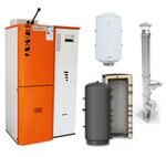 Pachet Centrala pe peleti Fornello Slimpell Easy 40 kw, arzator din inox, pompa de circulatie, tiraj fortat, buncar 88 kg, Ecodesign A+, Puffer P 500l, Cos inox 6 ml 120 mm, Boiler Termoelectric Fornello 100l