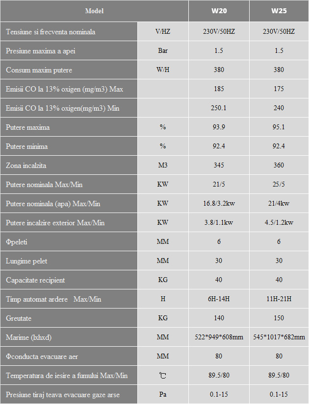Termosemineu centrala termica pe peleti, putere nominala 25 kw din care 21 kw agent termic la calorifere si 4 kw la ambient Tiraj fortat cu diametru de evacuare al fumului de 80mm.