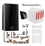 Pachet apartament cu 3 camere centrala murala in condensare Ariston Alteas One Net 24, 24 kw, Interfata cu ecran tactil, kit de evacuare inclus, termostat Salus IT 500, calorifere otel, kit armaturi centrala, robineti calorifere