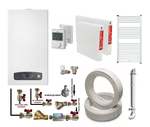 Pachet apartament cu o camera, centrala termica in condensatie Ariston Cares S 24 kW, kit evacuare inclus, termostat, teava hidronix, calorifere otel, kit armaturi centrala, robineti calorifer