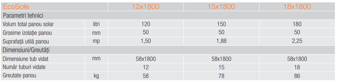 Specificatii tehnice panou solar nepresurizat Ferroli EcoSole
