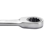 Chei cu cap deschis cu clichet cu lățimi metrice, egale. Design plat lateral cu dublu hexagon 72 dinti, unghi de lucru 5°. Poziția gurii 15°. Costum dreapta/stânga prin schimbarea cheii. Construcție inteligentă robustă, subțire și ușoară. Rezistență ridicată la încovoiere datorită profilului în T dublu. Suprafață prietenoasă cu pielea, cu aderență bună. Extrem de rezistent, excepțional de durabil picătură forjată, întărită și răcită în baie de ulei. Oțel aliat cromat, placat cu crom.