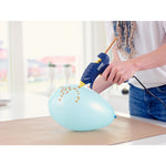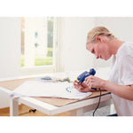 Pistolul de lipit EG130 este un pistol de lipit practic cu temperatură scăzută (130° C) pentru acasă și la școală. Este deosebit de potrivit pentru lucrul cu materiale sensibile la căldură. Dispune de un suport integrat, iar duza sa are un capac protector din silicon.