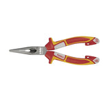 Cu falci lungi semi-rotunde, drepte si cu o gaura zimtata pentru prinderea piulitelor si a diferitelor piese de lucru. Folositoare in prinderea si taierea cablurilor cat si in lucrul cu fire foarte subtiri. Taietori de precizie caliti prin inductie pentru fire din material dur sau moale.                                       Suprafete zimtate pentru o prindere ferma a celor mai comune piese de lucru.                                                     Protectie anti-alunecare catre falcile clestelui, compacte pentru o bună manevrabilitate si totusi extrem de eficient.                                                                                                                                            Aprobat  individual la 1000V AC si 1500V DC pentru o siguranta de 100% in conformitate cu cu IEC 60 900 : 2012 VDE.