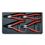 Set 4 clesti pentru inele de siguranta interioare sau exterioare Varfuri de precizie drepte, rezistente la alunecareÎntărit cu ulei, forjat în picăturiA21 și A2 cu arc de retur. Cod produs 777000 Standard DIN 90° A21...