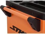 Dulap de scule echipat STHOR. Are 6 sertare cu blocare - care sunt montate pe ghidaje cu rulmenti. Rafturile mai mici au o capacitate de încărcare de 25 kg, iar rafturile mai mari de 35 kg. În plus, dulapul are incuietoare . Dulapul este echipat cu un mâner ergonomic și roți de cauciuc durabile, datorită cărora poate fi mișcat cu ușurință. Blatul de lucru a fost acoperit cu material antiderapant și are multe partiții practice - ceea ce face mai ușor să lucreze la dulap.