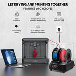 - Uscare eficientă: Cyclops utilizează un sistem de încălzire cu convecție forțată pentru a elimina rapid și eficient umiditatea din filament.