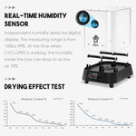 - Monitorizare în timp real: Un higrometru integrat afișează umiditatea din interiorul uscătorului, permițând monitorizarea procesului de uscare.