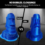 - Îmbunătățește calitatea imprimării: Filamentul uscat previne problemele de imprimare, cum ar fi fisurile, delaminarea și bulele de aer.