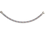 Furtun de conectare flexibil din împletitură de oțel inoxidabil. Este destinat apei calde și reci. Are certificat PZH pentru contactul cu apa potabilă. 400mm lungime. Presiune maximă 1MPa. Temp. Maxim 90. C. debit mediu 32L / min. Diametru interior 8mm și diametru exterior 12mm. Filet de conectare: 3/8 "x tata 3/8 ". Furtun de cauciuc din cauciuc EPDM, conexiuni din alamă nichelată.