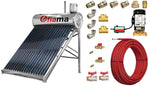 Pachet panou solar nepresurizat FIAMA pentru producere apa calda, cu rezervor inox, 180 litri, 18 tuburi vidate, vas flotor 5 litri, pompa ridicare presiune, teava hidronix si fitinguri montaj