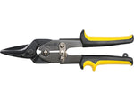FOARFECĂ PENTRU TABLĂ, DREPT Foarfeca pentru tabla, fabricata din oțel nichel crom, întărit 54-58 HRC. Suprafață înnegrită. Mânere acoperite cu plăcuțe ergonomice din plastic in doua culori. Prevazuta cu siguranta pentru blocarea falcilor. Pentru tăierea...