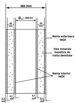 Materialul tubului interior este tabla inox W1.4301(AISI304) cu grosimea de 0.7mm pentru Di≥400mm si 0.5mm pentru Di<400mm.